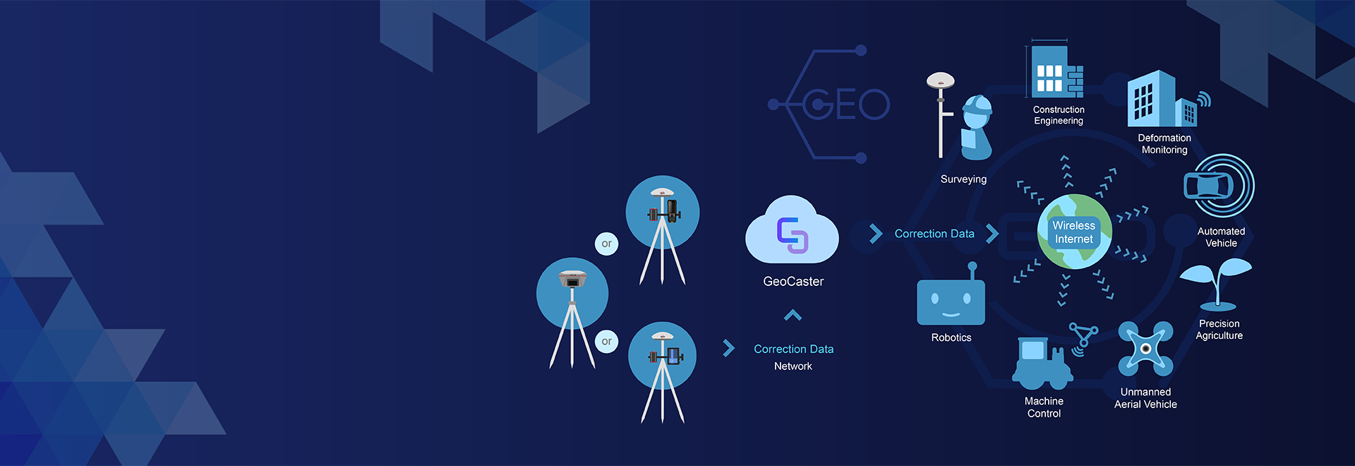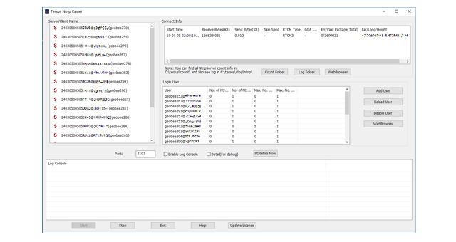The Tersus GeoCaster is a Networked Transport of RTCM via Internet Protocol (NTRIP) Caster software which allows GNSS correction data such as RTCM corrections to be repeated and sent to different end users via internet. It supports configurable bases online simultaneously and configurable rovers for one base. The end users involve in various areas including surveying, construction engineering, deformation monitoring, automated vehicle, precision agriculture, Unmanned Aerial Vehicle, machine control, robotics, and etc.