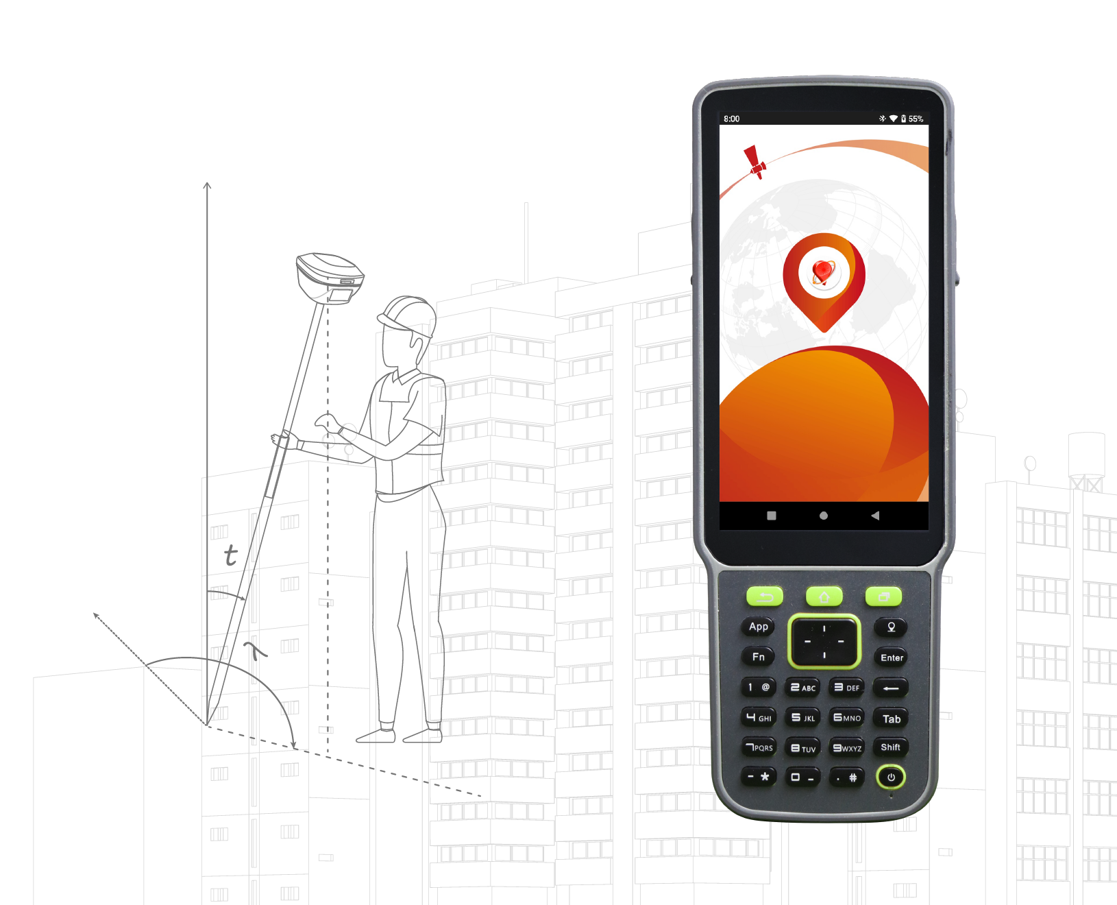 The TC80 controller is a rugged multi-function data controller with a 5.5" sunlight-readable HD touchscreen design and alphanumeric keypad. It is equipped with a powerful octa-core processor and Android operating system, perfect for adapting to NUWA app, which is our versatile and FREE survey field software with easy-to-use graphical interfaces and powerful features.
