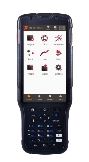 A rugged multi-functional data controller with design of 5'' HD touch screen and an alphanumerical keypad.